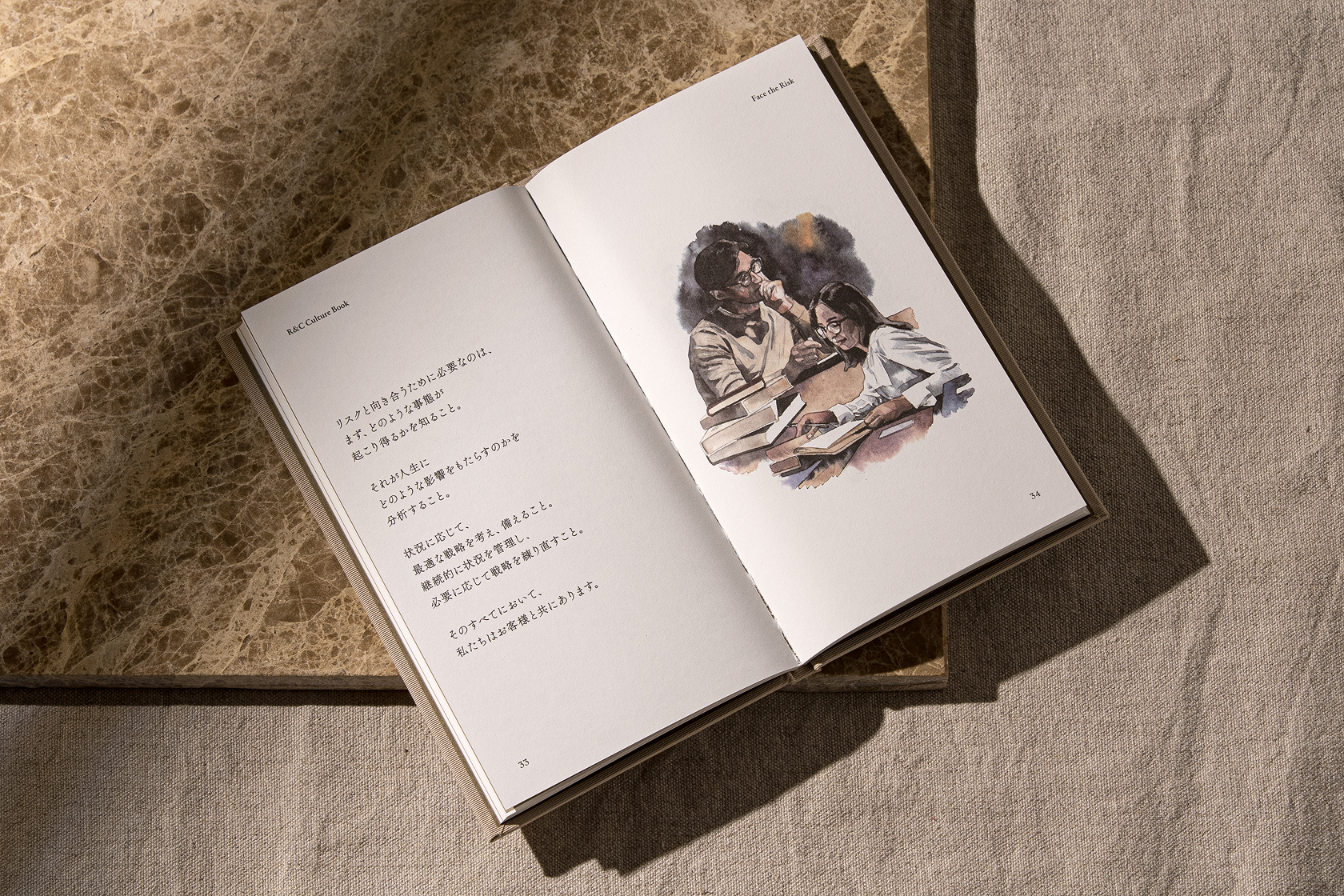 「リスクとは何か」「それにどう向き合うべきか」、そして「それが顧客の人生にどう影響を与えるのか」を表現するため、ブランドの言葉の定義から見直し、新たなブランドアイデンティティを構築。これにより、企業としての価値観を明文化し、社内外に一貫したメッセージを発信する基盤を整えていきました。さらに、策定したMVV(ミッション・ビジョン・バリュー)を軸に、カルチャーブックを起点としたインナーブランディング施策を実施。社員がブランドの背景や考え方を深く理解し、自らの行動に結びつけられるよう設計。単なる冊子ではなく、社内でブランドを体現し続けるためのガイドとして、組織文化の醸成に大きな役割を果たしています。